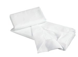 Made of poly / cotton blend with an elastic strap on each corner to slip over cot legs. Machine washable and dryable.