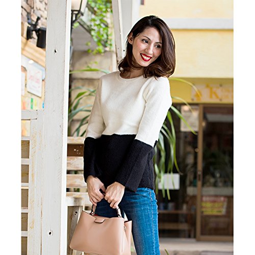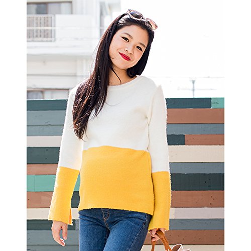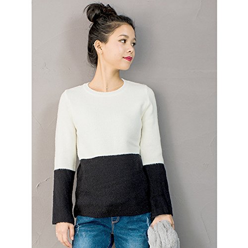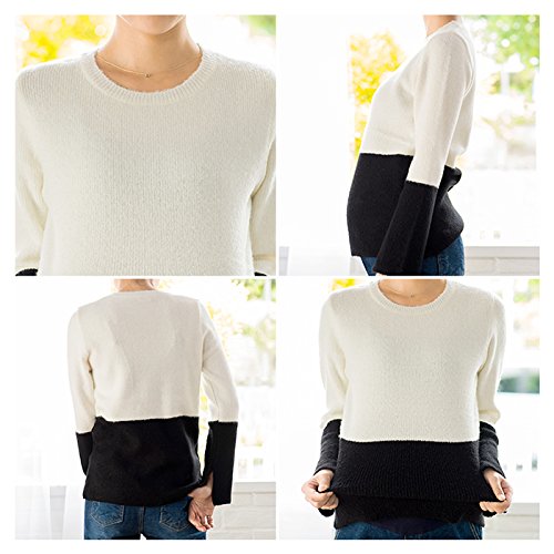 バイカラーのアクセントがかわいいふわふわな着心地のニット。伸縮性がすごく効いているので妊娠中もストレスフリーにご着用頂けます。流行の袖カット入り♪