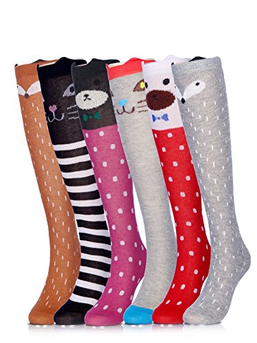 cismark Cartoon Animal Cat Bear Fox Cotton Over Calf膝高ソックス、6色、1サイズ