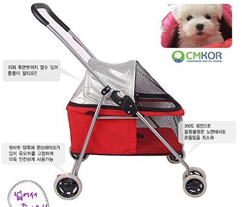 CMKOR Pet Stroller, Pet Carrier 4輪ペットカート 2 colors [並行輸入品] (RED)