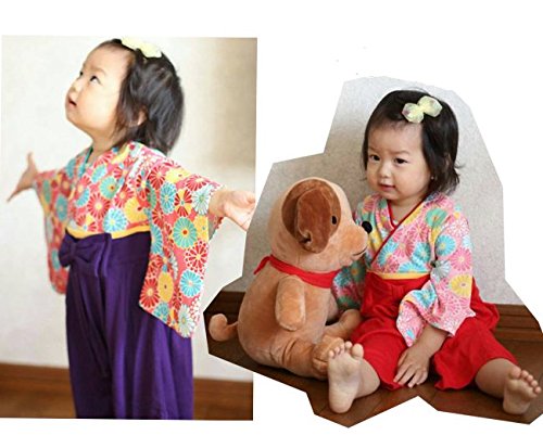 (キッズクール)Kids Cool 綿 女の子 レッド パープル ロンパース 花柄 風着物 七五三 祭り 祝日