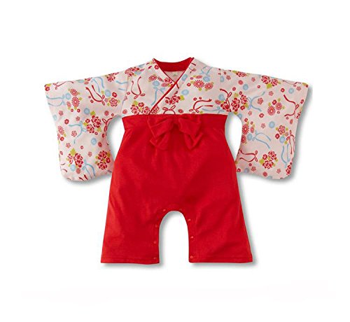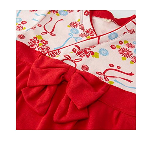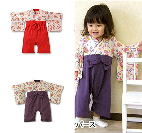 (キッズクール) Kids Cool 綿 女の子 レッド ロンパース リボン 着物