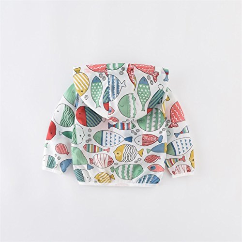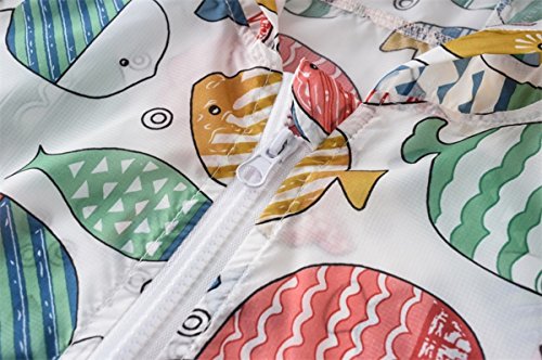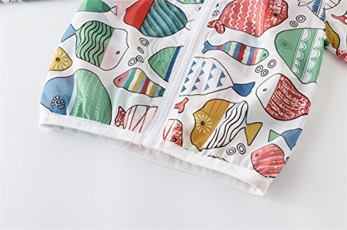 COCO1YA(ココイチヤ) 子供用 春夏 日焼け止め 紫外線 冷房 対策 薄手 男女兼用 涼しい 可愛い 蚊を防ぐ 通気性良い コート 軽い 魚プリント