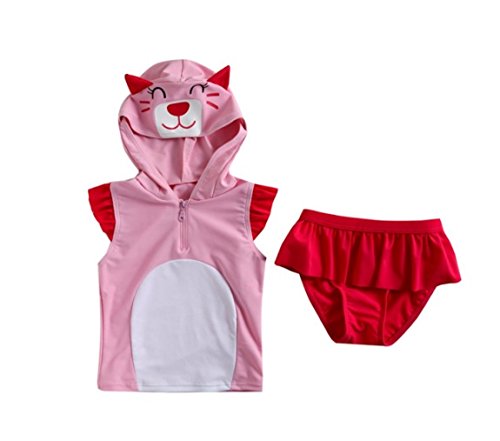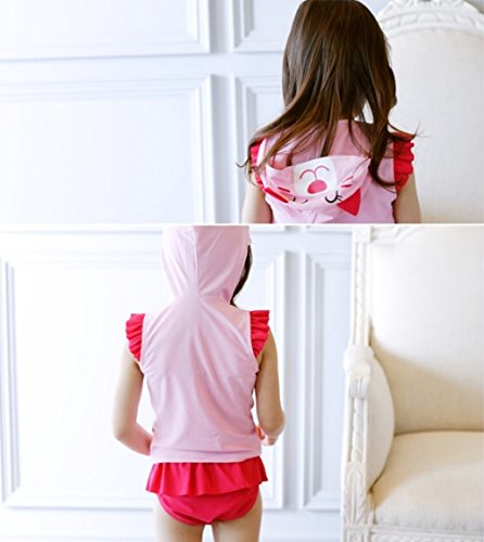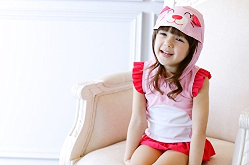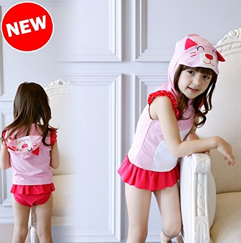女の子水着 女児水着&「COKO髪飾り」セット 可愛い猫ワンピース水着 UVカット 水泳・海水浴・温泉 (120)
