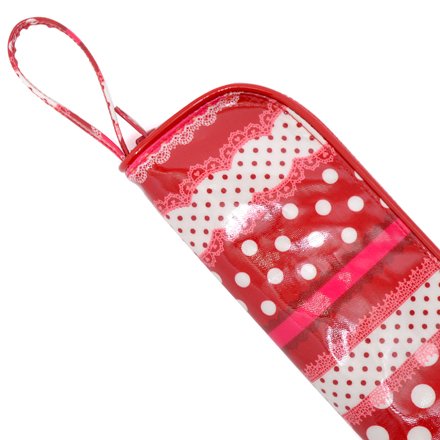 ビビッドな赤に大粒ドットがお行儀よく並んでいるよ。