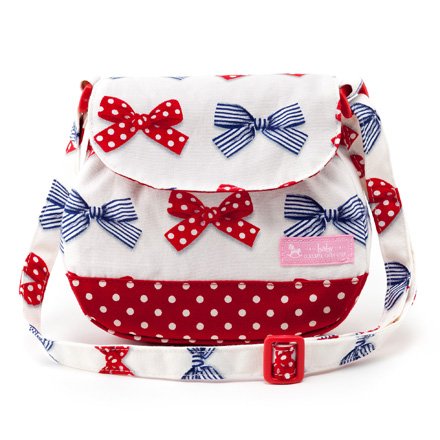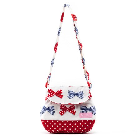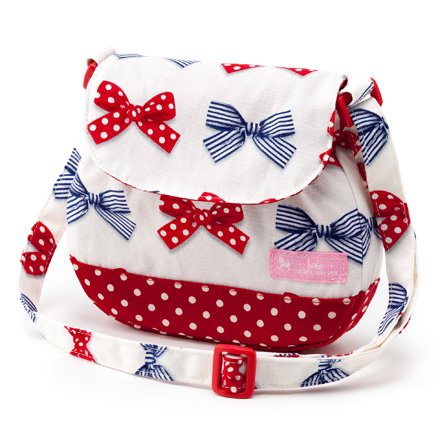 ミニショルダー 赤ちゃん お出かけ バッグ 日本製 ポルカドットとストライプのフレンチリボン(アイボリー) B1703100
