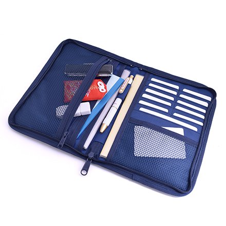 カードポケット、ペンホルダー、中身が確認できるメッシュ