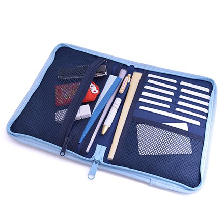 カードポケット、ペンホルダー、中身が確認できるメッシュ