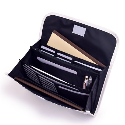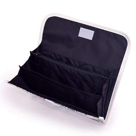 ノートのように見開きで中身を確認できるファスナータイプ。