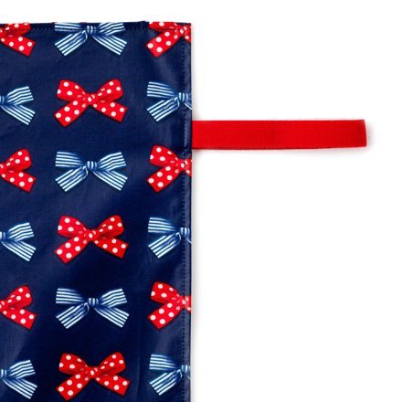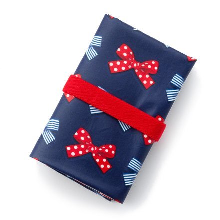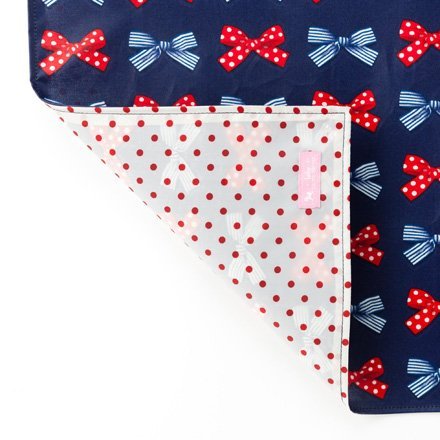 赤ちゃんにやさしい安心おむつ替えシート(日本製) 防水 コンパクト収納 出産祝い ポルカドットとストライプのフレンチリボン(スケアー地・ネイビー) B0704500 日本製