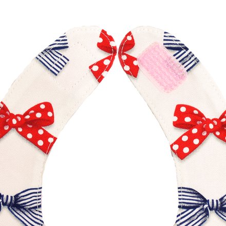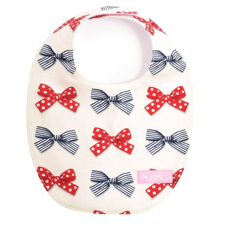 赤ちゃんにやさしい安心スタイ・ビブ・よだれかけ(丸型・日本製) ポルカドットとストライプのフレンチリボン(アイボリー) B0104600