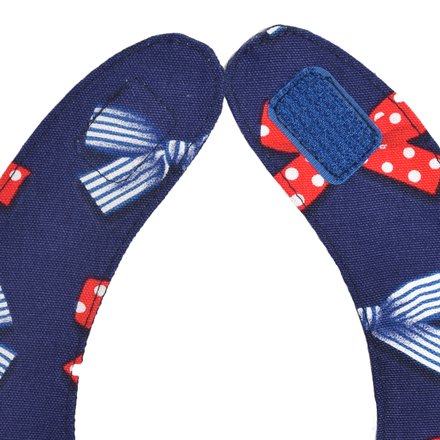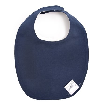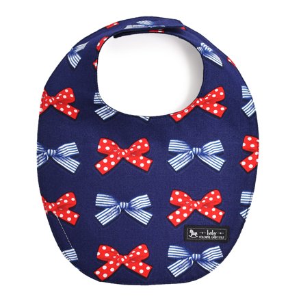 赤ちゃんにやさしい安心スタイ・ビブ・よだれかけ(丸型・日本製) コットン100% 吸水 吸湿 お出かけ スタイ 丸型タイプ ポルカドットとストライプのフレンチリボン(ネイビー) B0104700 日本製