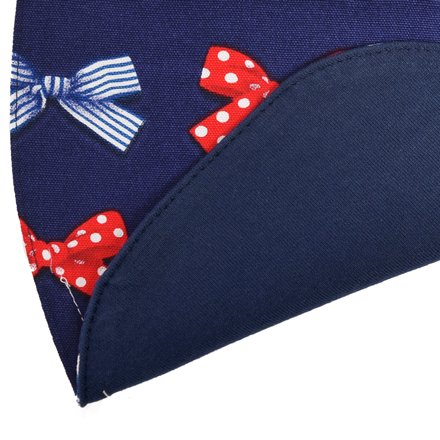 落ち着いた紺地に、愛らしいフレンチリボンのモチーフがたくさん!