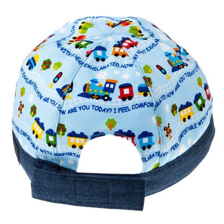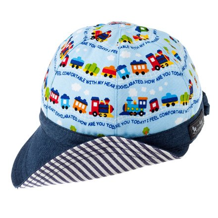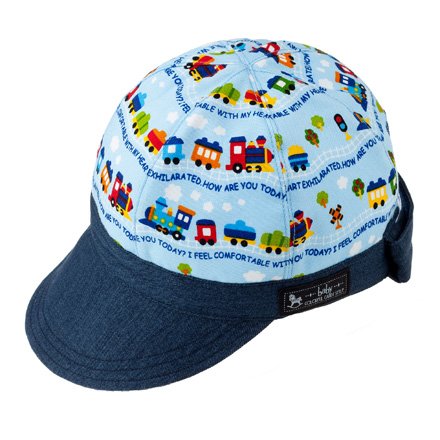 笑顔でおでかけベビー帽子・キャップ(日本製) カラフル列車で行こう(ライトブルー) B19003