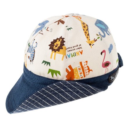 笑顔でおでかけベビー帽子・キャップ(日本製) サバンナ横断どうぶつ大行進(生成) B19004