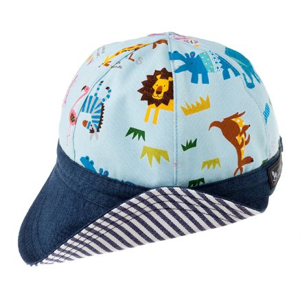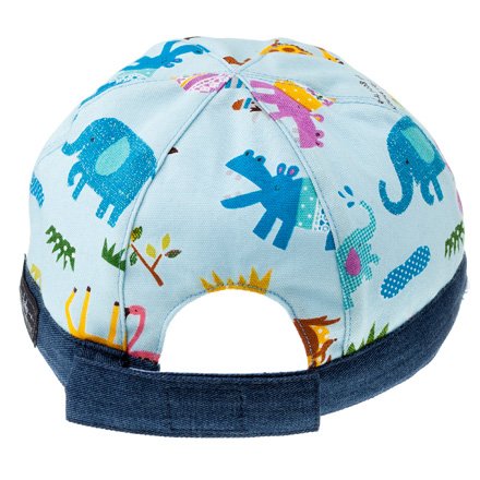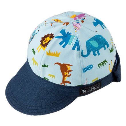 笑顔でおでかけベビー帽子・キャップ(日本製) サバンナ横断どうぶつ大行進(ライトブルー) B19005