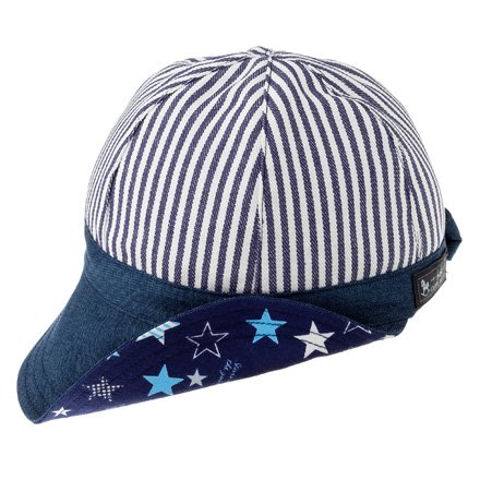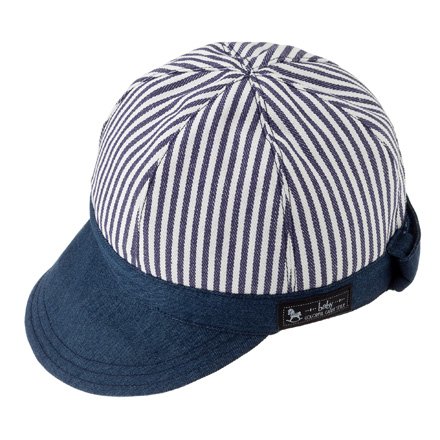 笑顔でおでかけベビー帽子・キャップ(日本製) ヒッコリーストライプ・紺 B19009