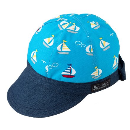 笑顔でおでかけベビー帽子・キャップ(日本製) おしゃれヨットでバカンスの旅(スカイブルー) B19014