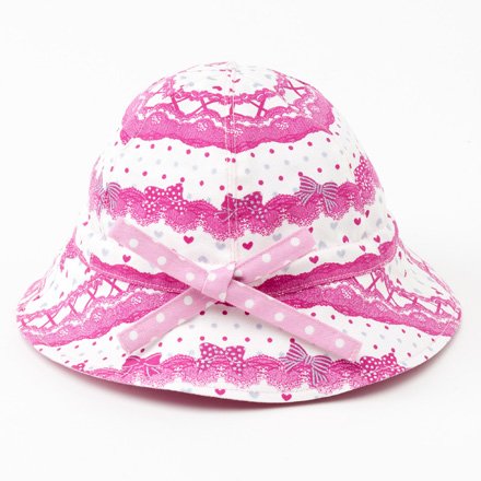 笑顔でおでかけベビー帽子・ハット(日本製) リボンとレース模様でプリティcute(ホワイト) B20001