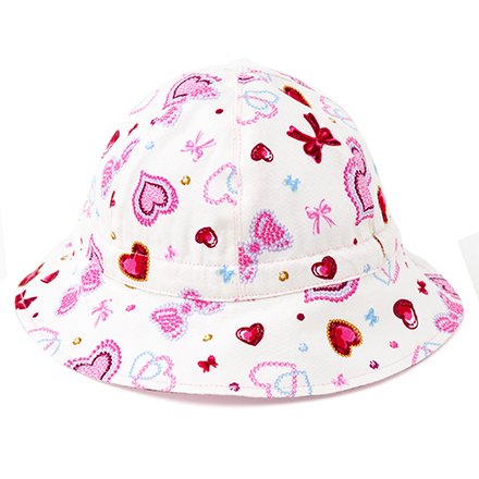笑顔でおでかけベビー帽子・ハット(日本製) ハートとリボンのきらきらビューティー(ホワイト) B20002
