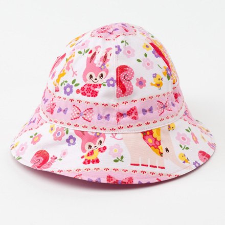 笑顔でおでかけベビー帽子・ハット(日本製) お花大好きプリティ動物フレンド(ピンク) B20006