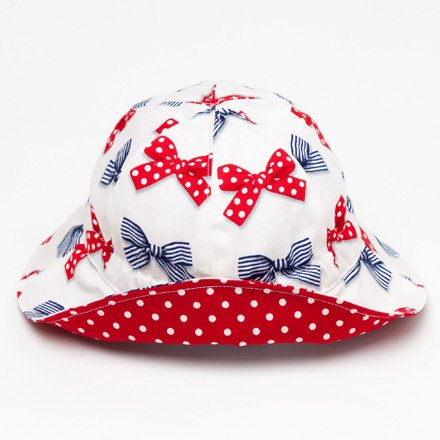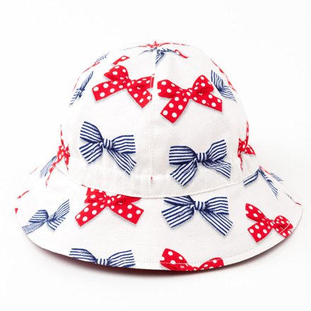 笑顔でおでかけベビー帽子・ハット(日本製) ポルカドットとストライプのフレンチリボン(アイボリー) B20011
