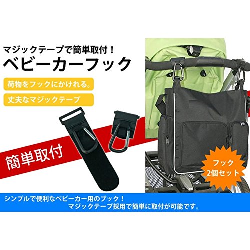 COM-SHOT 【 マジックテープ 式 】 ベビーカー 用 カラビナ フック 【 2個 セット 】 簡単 小物 収納 MI-BEBIHUKU