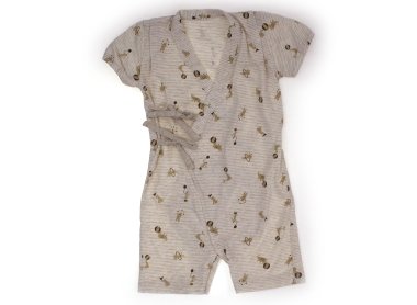 実際のサイズ表記は50-70です。甚平のようなデザインのカバーオールです。毛羽立ちはありますが、目立つ汚れはなくまだまだ夏場に活躍してくれそうです。