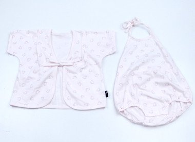 目立った汚れがなくきれいなお品です。甚平風ロンパースです。