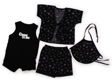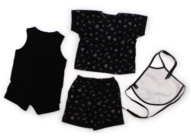 三点セットの甚平です。色褪せや毛羽立ちはありますが、汚れは見当たらずまだまだお使いいただけます。おまけで同ブランドのカバーオールつき。