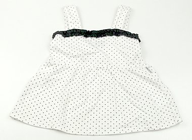薄く柔らかいカットソーです。前裾と背中、肩ストラップにごくごく小さなシミがありますが手ざわりが良く、まだまだ活躍してくれそうです。