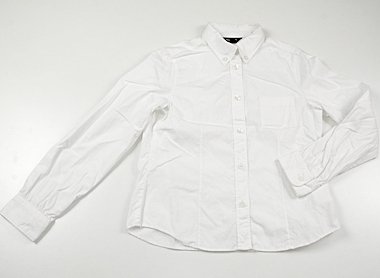 - シャキッとしたシャツ生地。カフスとウエスト付近に複数の薄い変色・小さなシミがありますがまだまだ活躍してくれそうです。
