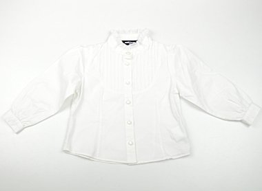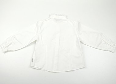 やや使用感・ひじ部分に薄い黄ばみはありますが、衿端のシフォンフリルがエレガント。本体は綿100%です。