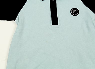 - さらっとした鹿の子ポロです。お腹のあたりに薄いシミが5cm範囲ほどであり、若干色褪せもありますが型崩れなどは少なくまだまだ活躍してくれそうです。