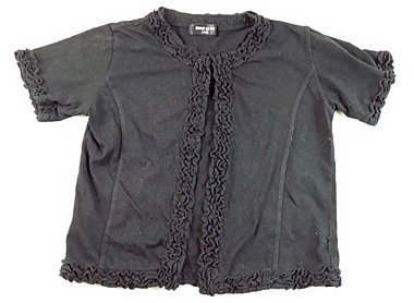 わずかに毛羽立ちありますが目立った汚れのない良品です。手触りの良いカットソーカーディガン。半袖のはおり物は重宝します!前中心はスプリングホック止めです。