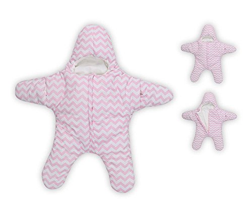 おくるみ 寝袋 ヒトデ新生児着ぐるみ 赤ちゃん 寝冷え 通気 室内外兼用 お出かけ用品 保温 防寒 秋冬用 スターラップ 星型アフガン 0~一歳用 コットン 洗濯機可 (ピンク)