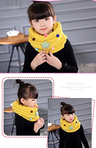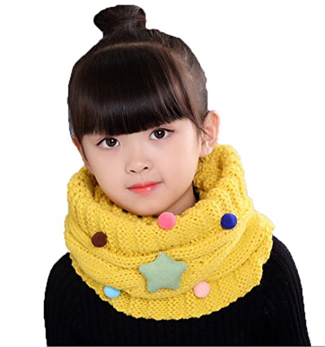 COMVIP 子供 キッズ 女の子 男の子 可愛い 装飾 厚手 防寒 ふわふわ 通学 通園 マフラー カジュアル スカーフ ロング スカーフ スヌード ネックウォーマー 黄色