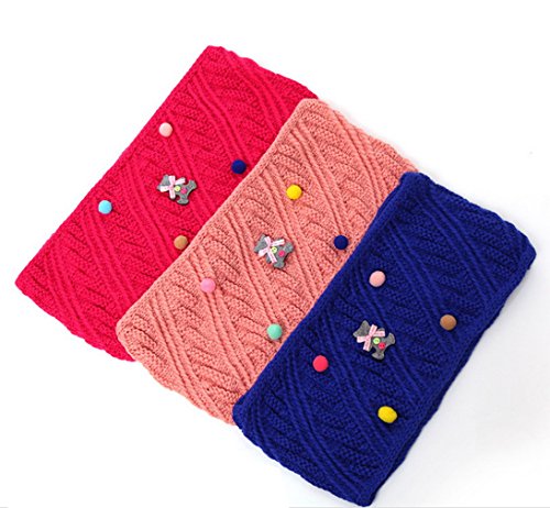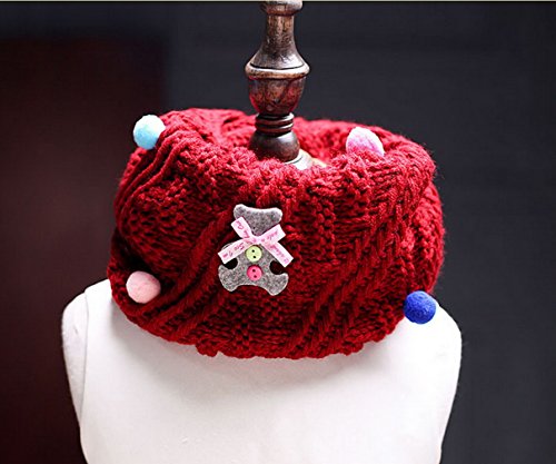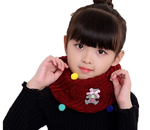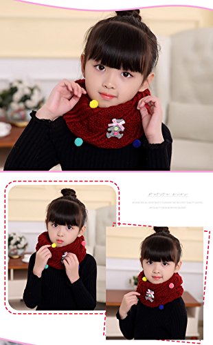 COMVIP 女の子 男の子 子供 キッズ 防寒 厚手 可愛い 装飾 ふわふわ カジュアル スカーフ スヌード ネックウォーマー 通学 通園 マフラー ロング スカーフ 赤色 B