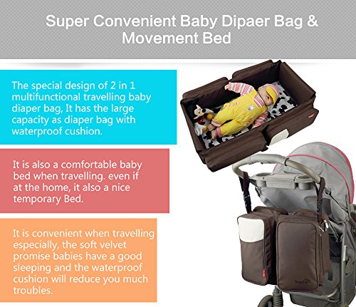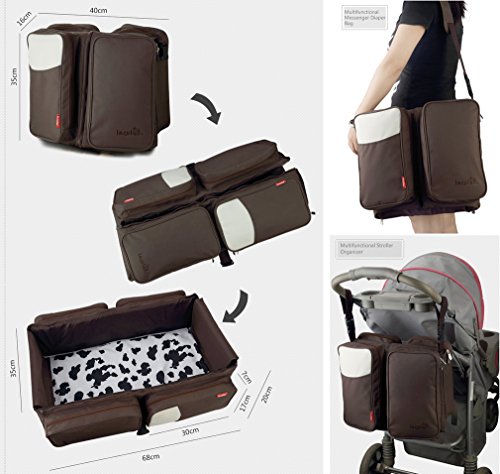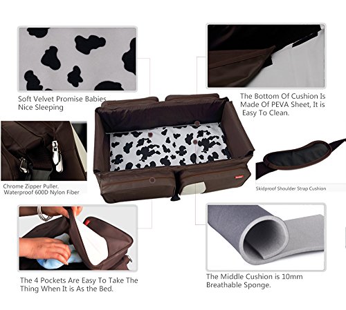 COMVIP 多機能 折り畳み マザーズバッグ 便利 赤ちゃん旅行用 ファッション ベビー用品収納 カジュアル 簡易ベビーベッド 単肩 ブラウン
