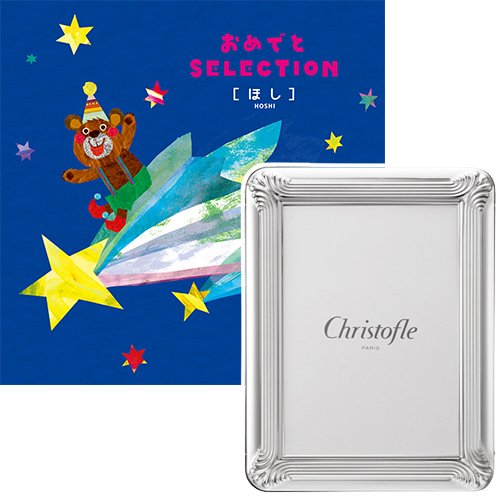 - 出産祝いやお子様のお誕生日にぴったりのカタログギフト。出産の喜びをいつでもそばに飾れるように、クリストフルのフォトフレームをセットにしました。