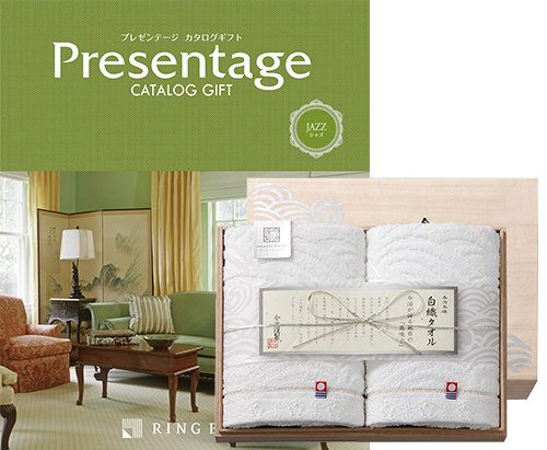 CONCENT リンベル Presentage(プレゼンテージ)カタログギフト JAZZ〔ジャズ〕+今治謹製 『白織タオル』 木箱入り SR2039 (フェイスタオル2P)