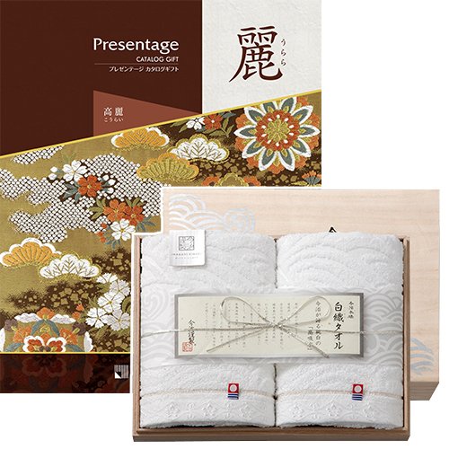 CONCENT カタログギフト リンベル プレゼンテージ・麗(うらら) 〔高麗(こうらい)〕+今治謹製 『白織タオル』 木箱入り SR2039 (フェイスタオル2P)