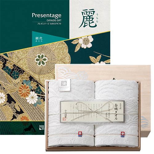 CONCENT カタログギフト リンベル プレゼンテージ・麗(うらら) 〔網代(あじろ)〕+今治謹製 『白織タオル』 木箱入り SR2039 (フェイスタオル2P)