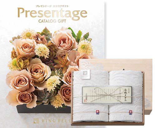 CONCENT リンベル Presentage(プレゼンテージ)カタログギフト ALLEGRO〔アレグロ〕+今治謹製 『白織タオル』 木箱入り SR2039 (フェイスタオル2P)