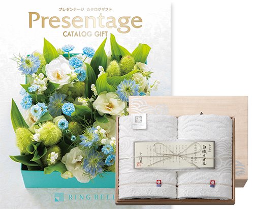 CONCENT リンベル Presentage(プレゼンテージ)カタログギフト DUO〔デュオ〕+今治謹製 『白織タオル』 木箱入り SR2039 (フェイスタオル2P)