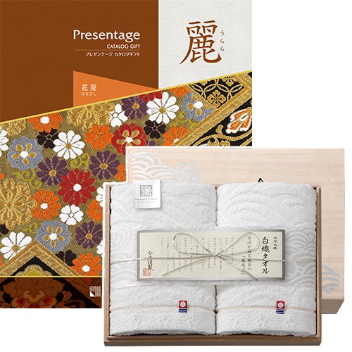 CONCENT カタログギフト リンベル プレゼンテージ・麗(うらら) 〔花菱(はなびし)〕+今治謹製 『白織タオル』 木箱入り SR2039 (フェイスタオル2P)