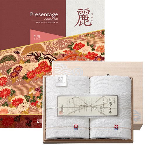CONCENT カタログギフト リンベル プレゼンテージ・麗(うらら) 〔矢羽(やばね)〕+今治謹製 『白織タオル』 木箱入り SR2039 (フェイスタオル2P)