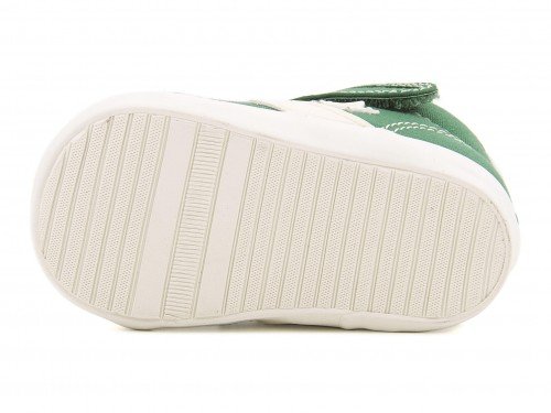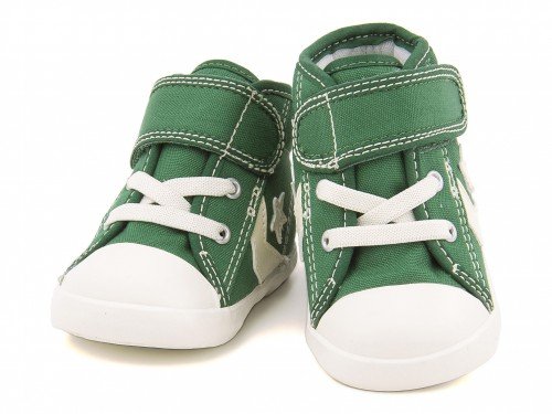 『converse(コンバース) BABY CANVAS CHEVRONSTAR N V-1(ベビーキャンバスシェブロンスターNV-1) 7CK173 グリーン』 人気ブランド「converse」の「シェブロンスター」シリーズから、ベビー用のアレンジモデルシューズが登場。面ファスナー&ゴムひもタイプで、大きく開いて脱ぎ履きしやすいデザインになっています。屈曲性のあるしなやかなソールが、お子様の足の負担を軽減。厚みを持たせたインナーで、足元を優しくフィットします。足先にゆとりを持たせた「ルーミーラスト」を採用し、足先を自由に動かせるようになっています。抗菌加工を施した中敷きは、取り外し可能でいつも清潔に保てます♪クラシックなグリーンカラーは、ストリートスタイルにも合わせやすい可愛らしい一足です。※展開サイズ:キッズ