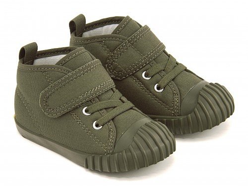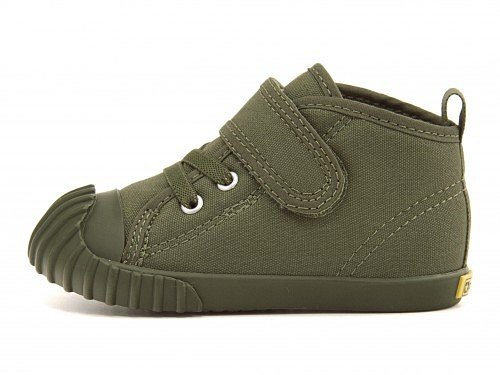 つまさきにボリュームのあるミリタリートレーニングシューズをイメージしたデザインを取り入れ、トレンドのオールインカラーでまとめた一足。タンが大きく開くオープンタン設計で、靴の脱ぎ履きがスムーズです♪しなやかなラバーに、踵部分にはボードが付属し、足の曲がる位置でしっかり屈曲するソール設計。ゴム紐×ベルトタイプに、かかとのビッグタブで脱ぎ履きしやすいデザインです。取り外しが可能で簡単に洗え、いつも清潔に保てる抗菌加工の中敷を搭載。ゆったりとしたルーミーラストで足先を自由に動かせます。※展開サイズ:キッズ