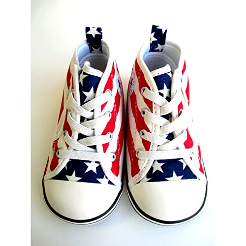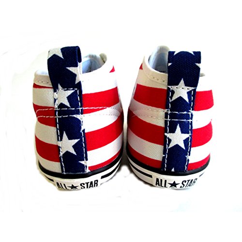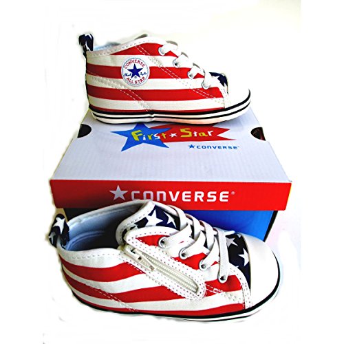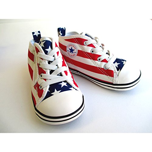 誰もが知るアメリカの象徴的な柄であり、コンバースを代表する柄の一つである 「スターズ&バーズ」をアッパーにプリントしたモデル。ゴアシューレースが 縫付仕様のため解ける心配がなく、つまみやすい広めの踵テープを採用する。 ソールはしなやかなラバーに、踵部分にはボードを内蔵し、足の曲がる位置で しっかり屈曲する設計で、脱ぎ履きしやすいデザインに仕上がっている。 ファミリーペア(アダルト、キッズ、ベビー)モデル。